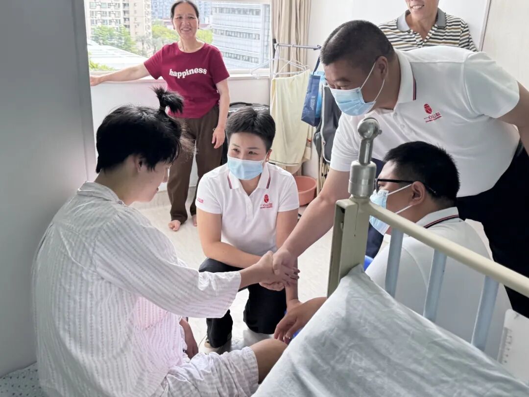 在探访过程中,志愿者们握住小兴的手,轻声鼓励他:“你比想象中更强大,好好吃饭、好好休息,生活还有很多美好在等着你。”少年眼中泛起泪光。那一刻,队员们深感生命的顽强与不易,也更加坚定了为患者提供支持与帮助的决心。