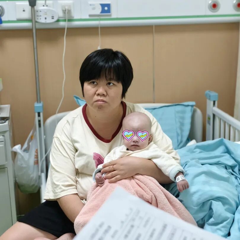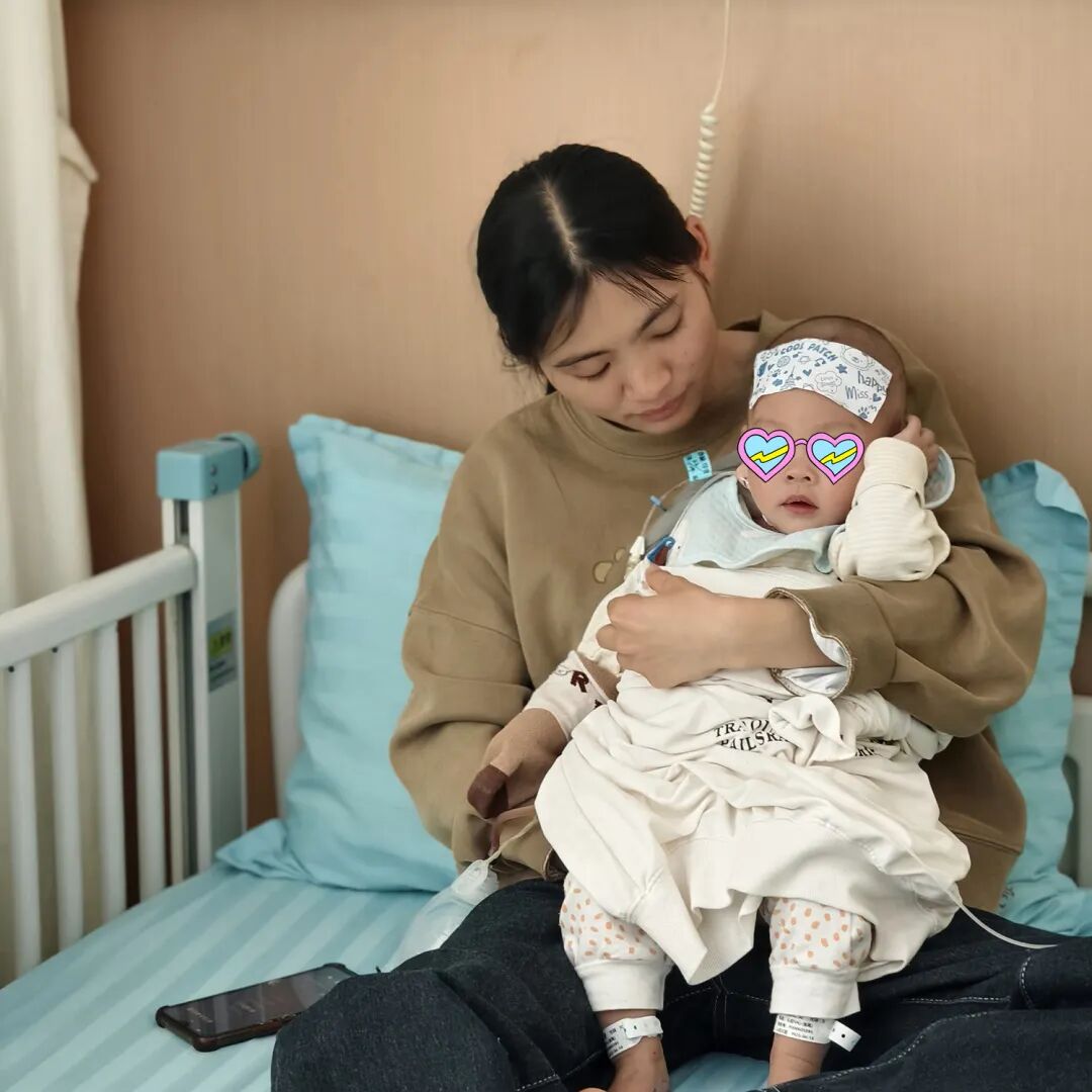 首先,志愿者见到了患儿小乐及其母亲,小乐6个月大,是双胞胎中的哥哥。母亲在孕期检查时就发现胎儿心脏异常,小乐出生后确诊患有肺动脉瓣狭窄、卵圆孔未闭、三尖瓣反流等复杂先心病。
