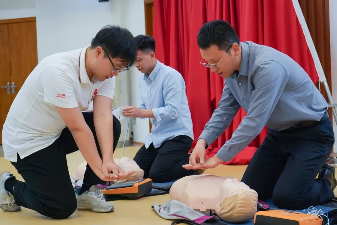 理论讲解结束后,进入了实操演示环节。学员们分组在导师和助教的指导下,依次进行心肺复苏和AED的实操练习。学员们认真地按照所学知识和技能进行操作,导师和助教则一对一地进行指导和纠正,确保每位学员都能掌握正确的操作方法。通过实操练习,学员们不仅巩固了理论知识,还提高了实际操作能力,增强了应对突发事件的信心。现场学习氛围浓厚,参与者积极互动。