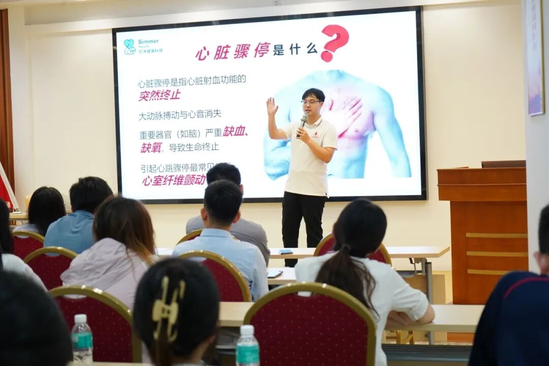本次培训聚焦于心肺复苏和AED的使用方法,分为理论学习与模拟实操两个环节。杨凯导师结合真实案例和详实数据,深入浅出地讲解了心肺复苏的概述及基础知识,涵盖判断意识、呼救、摆放体位等关键步骤,并详细阐述了自动体外除颤仪(AED)的使用流程,使学员们迅速掌握了心肺复苏的流程与具体操作。