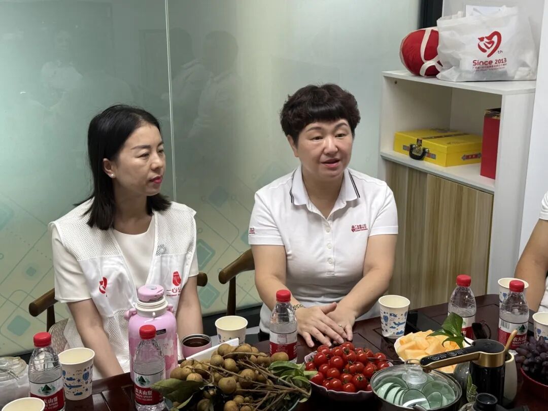 本次走访的第一站是谢波师姐的企业——唯成国际货运代理有限公司,企业位于东莞市天安数码城。首先,第二服务队秘书长刘清华师姐向大家介绍了一心公益基金会的基本概况,并重点介绍了一心公益的“救心”项目的公益成果。