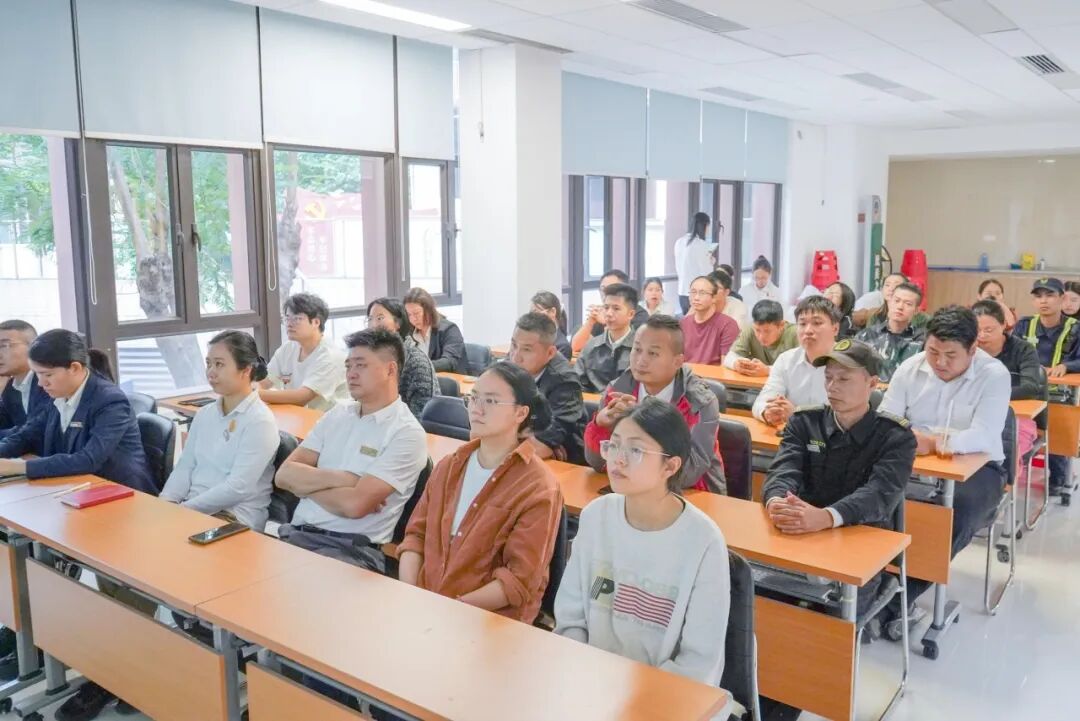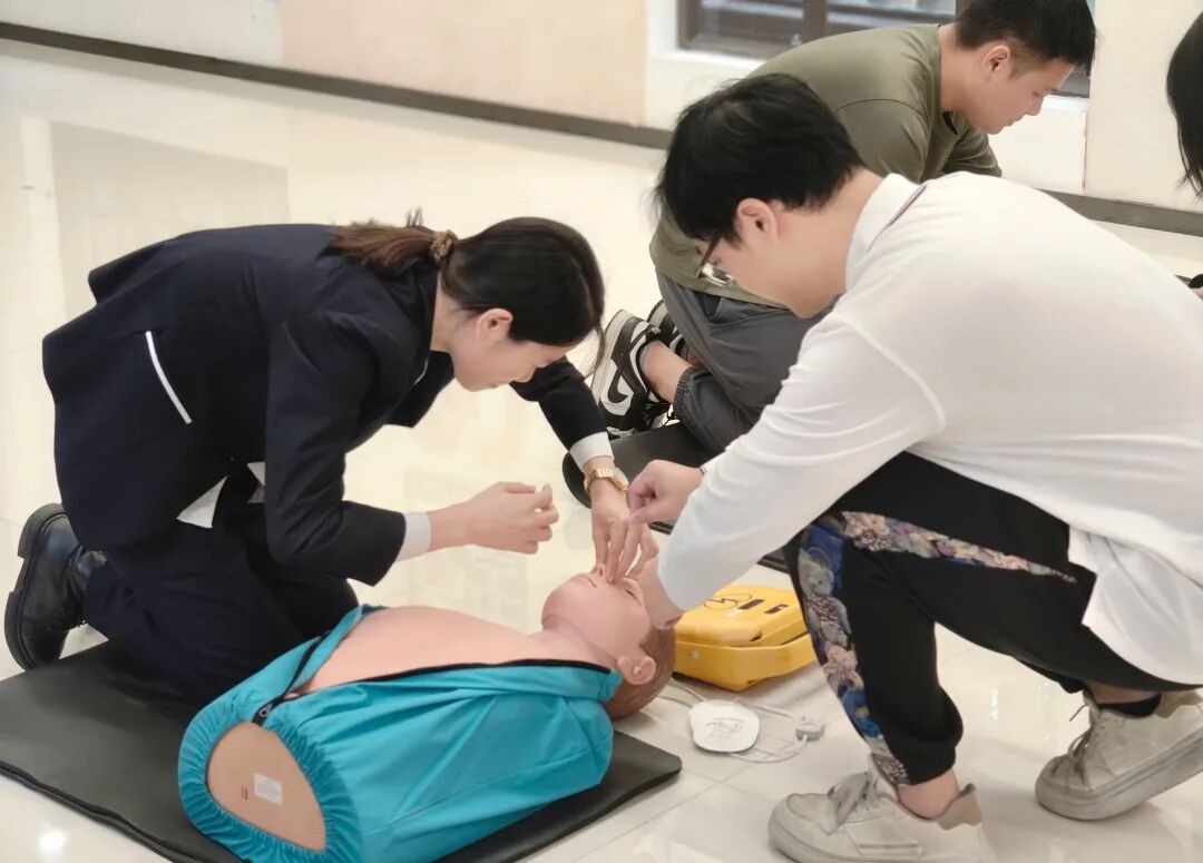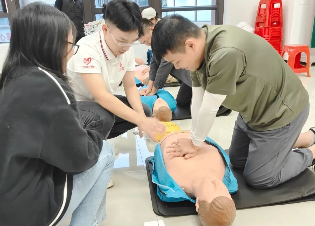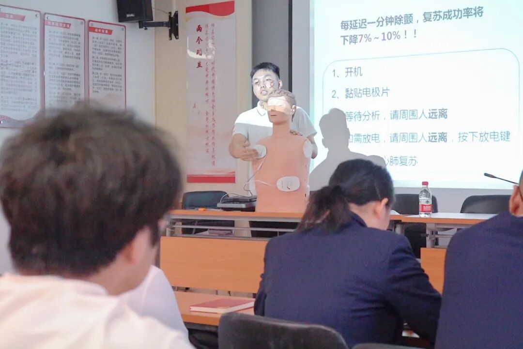随后,在理论讲解环节,培训导师系统介绍了我国当前的急救现状、涉及公众急救的法律保护框架,并深入讲解了心肺复苏的操作原理与关键步骤,同时详细演示了自动体外除颤仪(AED)的使用方法。