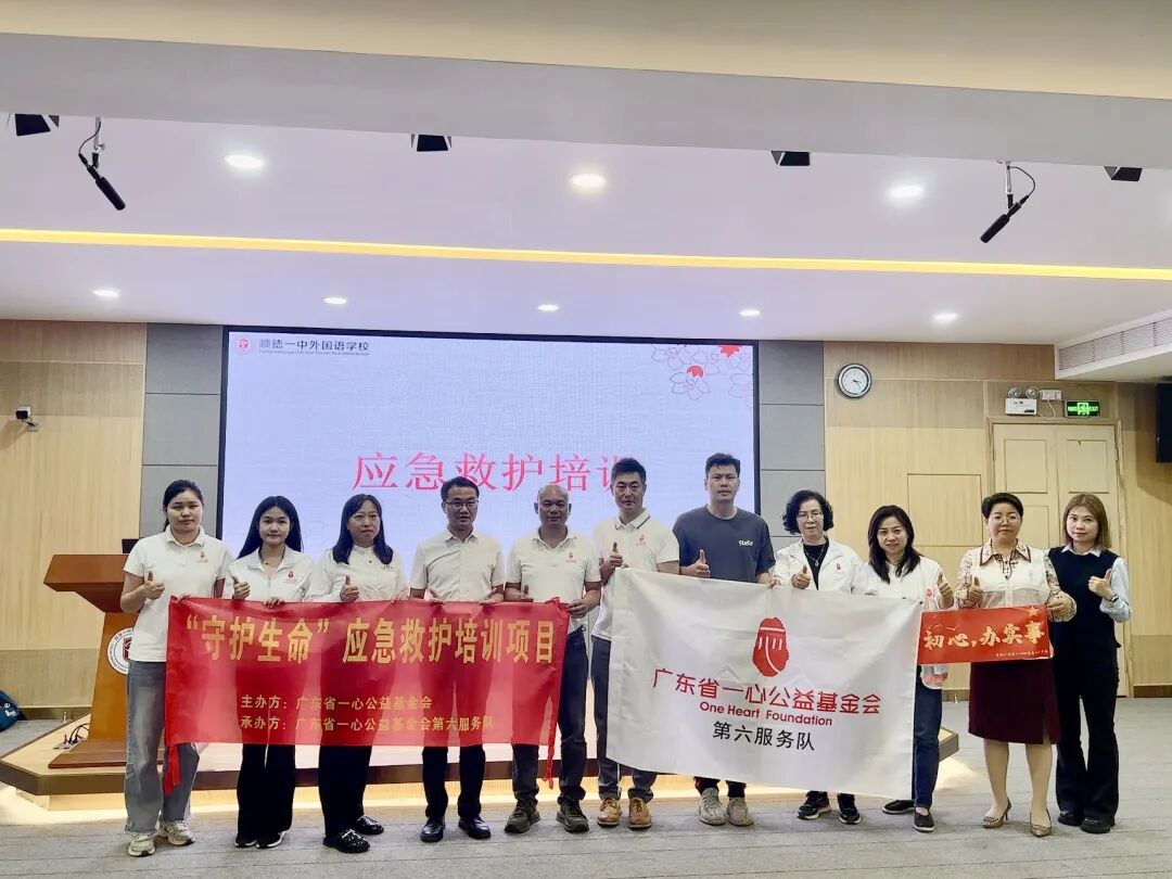 2026年3月23日,广东省一心公益基金会第六服务队走进顺德一中外国语学校,开展AED(自动体外除颤器)捐赠暨应急救护培训活动。本次活动由佛山福沃德医疗科技公司导师罗双老师担任主讲,学校相关负责人及师生代表42人参与学习。