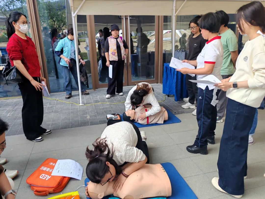 培训内容包括心肺复苏操作流程、自动体外除颤器使用、气道异物梗阻急救、常见意外伤害处理等实用知识,并增设AED场景模拟及烧伤、家庭意外等案例分析。每场培训均设置理论讲解与实操演练环节,讲师结合真实案例讲解急救知识,现场演示胸外按压、人工呼吸及AED操作流程,并组织学员分组练习,一对一指导纠正,确保参训者掌握规范操作。