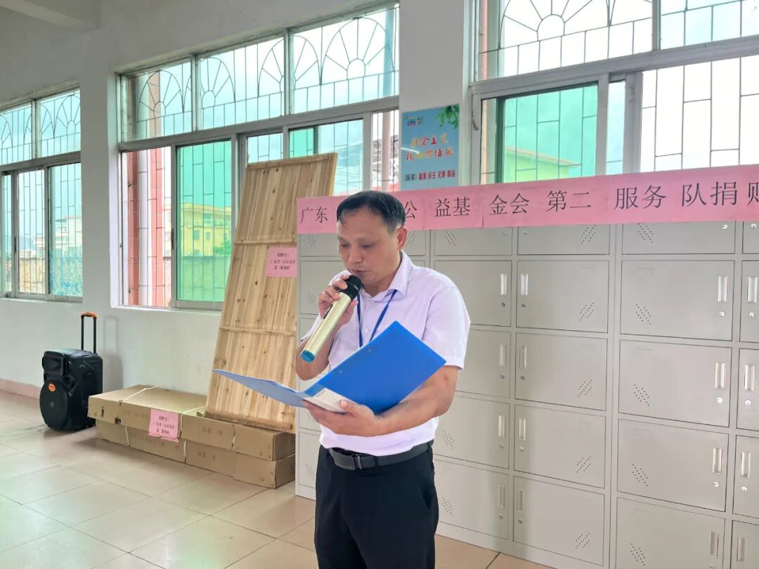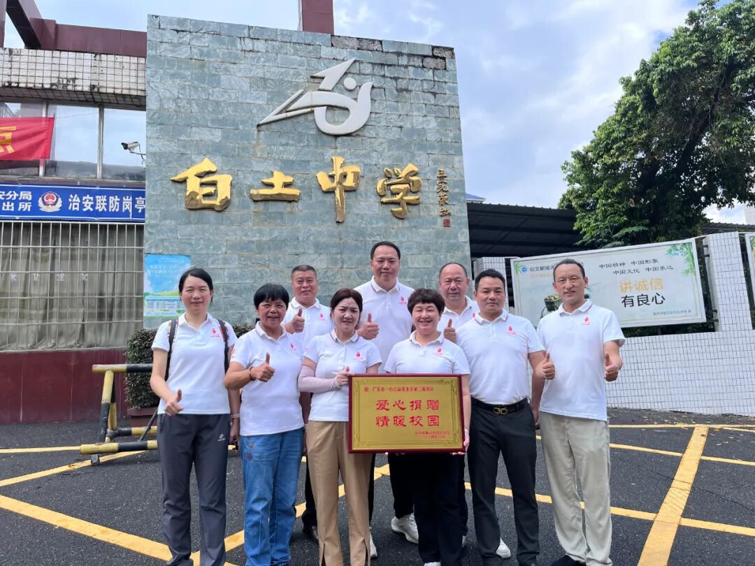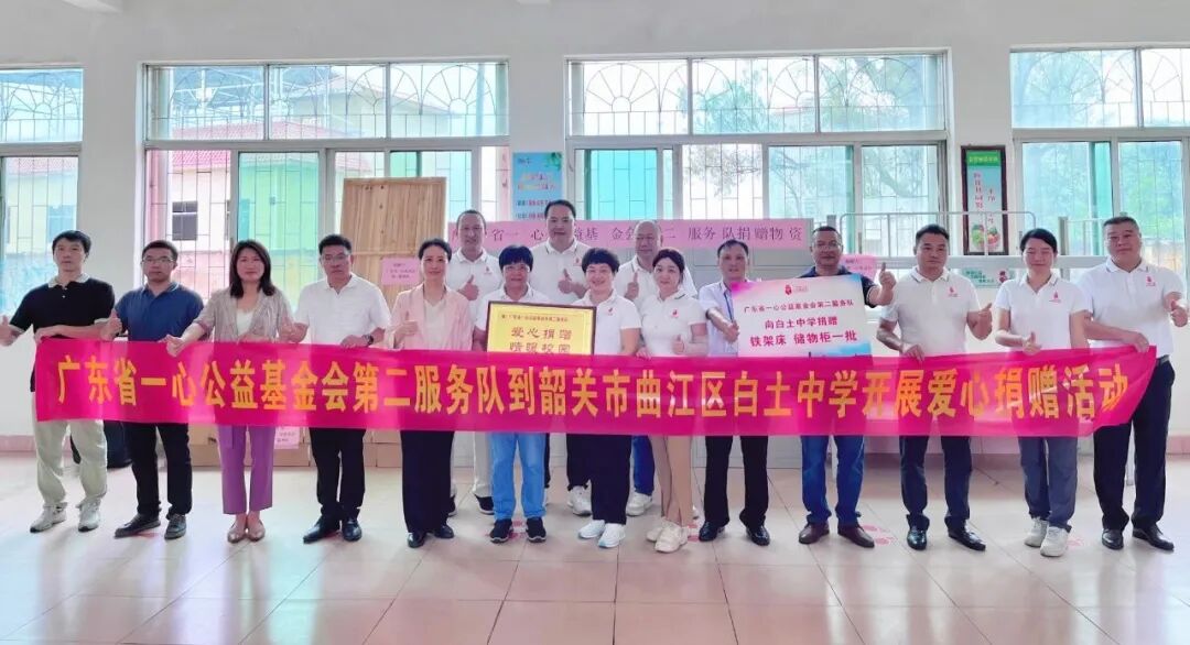 2024年7月2日,广东省一心公益基金会第二服务队谭冠恒师兄、刘清华师姐、方群英师姐等9名队员前往广东省韶关市白土中学开展助学活动,向学校捐赠爱心物资。