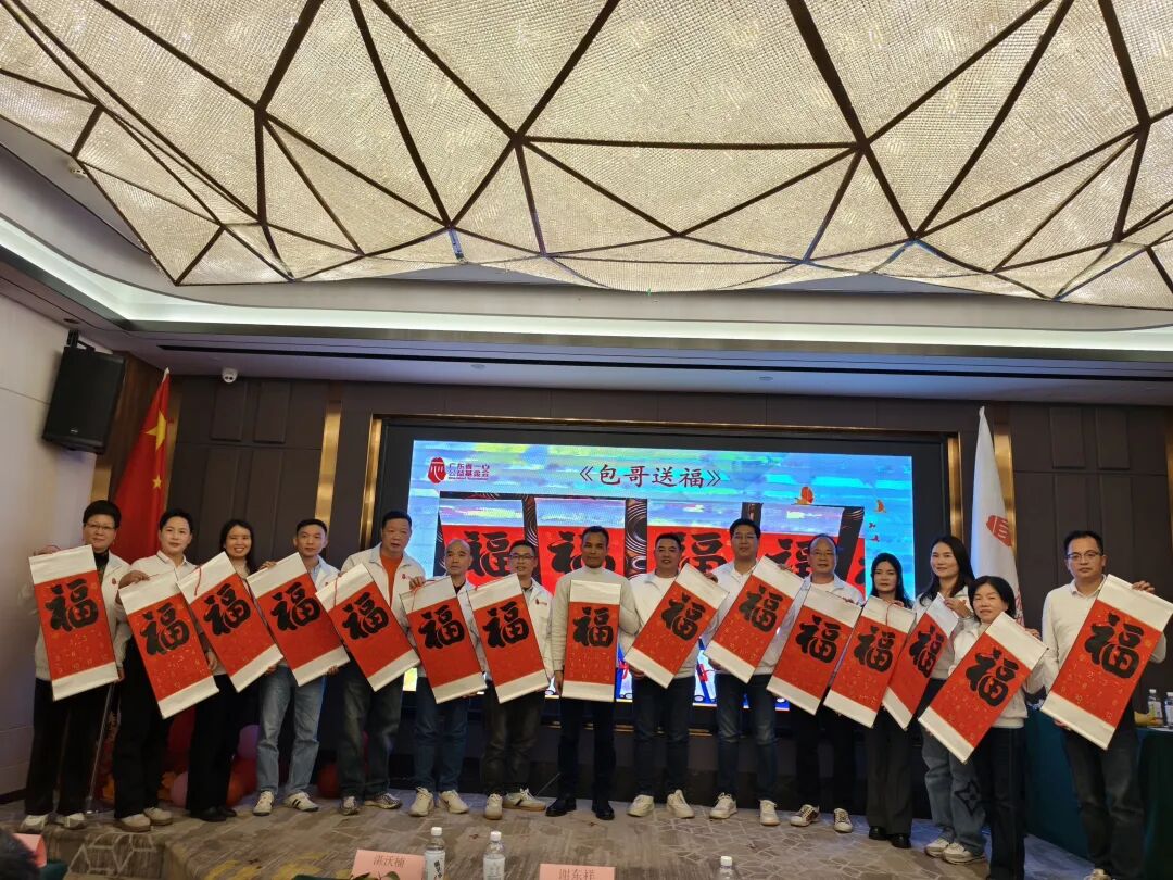 第十服务队秘书长姚泳照师兄向与会人员汇报2024年度工作总结以及2025年工作计划。第十服务队财务管理委员会主任朱国伟师兄汇报2024年度财务报告及2025年度的财务预算。接着,6名新队员在基金会副理事长湛沃楠师兄的见证及第十服务队创队队长朱健斌师兄的带领下,进行了庄重的入队承诺仪式。姚灌坤师兄为新队员佩戴基金会徽章。大家还一起观看了第十服务队志愿服务活动短片,回顾了2024年公益活动风采。大会进行了服务队理事会补选理事投票。按照基金会规范的选举程序,经队员投票,吴洋师姐、张尔师兄当选服务队理事。现场响起热烈的掌声,祝贺2位理事的加入。此外,大会邀请了第二服务队队长谭冠恒师兄、服务队队员温炳和师兄、廖敏茹师姐作嘉宾分享。他们传递公益正能量,倡导无私奉献的公益理念,多年来坚定不移地走在公益路上,赢得了大家的阵阵掌声。最后,基金会理事长谢东祥进行总结发言。他表示,第十服务队自成立以来,一直坚定不移的践行公益使命,他对服务队队员的无私奉献、不断进步予以肯定,希望各位队员不忘走进公益道路的初心,并持之以恒,祝愿服务队越来越好。值此2025年即将来临,理事长谢东祥为现场嘉宾赠送亲手书法的《福》字日历,希望大家蛇年大吉,家庭幸福,万事如意!此外,在晚宴环节大会进行了爱心拍卖,队员捐赠的10幅书法作品相继亮相,现场竞拍激烈,大家纷纷认拍,共为服务队筹得27,633元行政经费。本次大会圆满结束!通讯/摄影丨潘彩玲