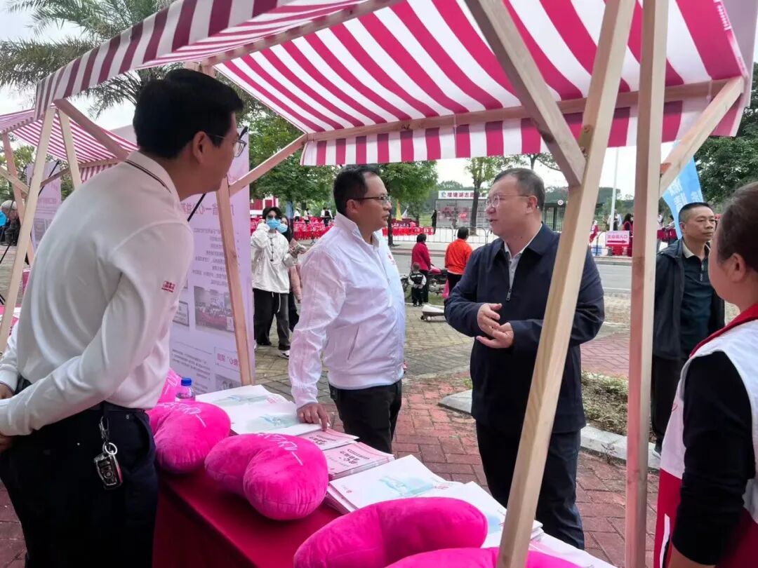 第十服务队的队员们穿梭其间,耐心开展公益宣导,向大家亲切介绍基金会的“救心”、助学、敬老等重点项目,真诚呼吁更多人将善心融入日常,从身边小事做起,传递温暖与关爱。活动尾声,增城区领导与志愿者们齐聚公益摊位前,合影记录下这充满温情与意义的一刻,也为整场公益行动画上了圆满的句号。