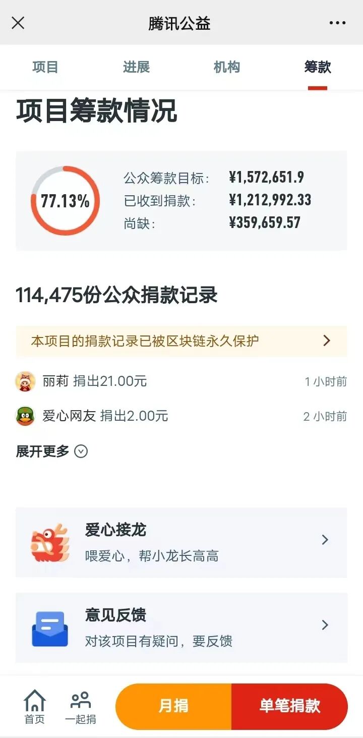截至2022年7月4日,共有114475人参与捐赠,9389人开通月捐,筹得善款1,212,992.33元。在6月里,一心公益共收到30名先心病患儿求助申请资料,开展13场先心病探访活动,目前已有22名孩子受到资助并已入院治疗。