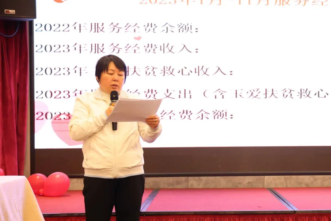 服务队队长刘秋兰汇报2023年服务工作总结;财务管理委员会主任张小华汇报2023年财务工作报告;秘书长陈碧华汇报2024年服务队工作计划。