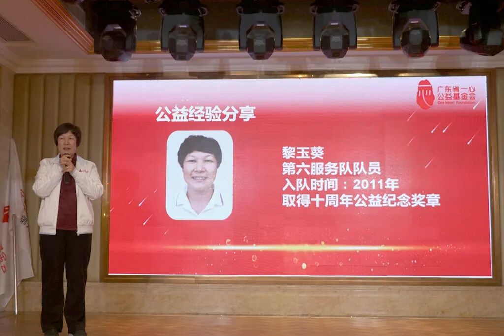 第六服务队队员、“一心公益十周年纪念勋章”获得者黎玉葵师姐和胡键师兄分享了他们的公益故事。他们发自内心、情真意切地分享让大家为之感动,并送上掌声。大会分别邀请了基金会副理事长陈法明师兄、第四服务队队长刘秋兰师姐、第九服务队队长郭燕英师姐做公益经验分享。他们传递公益正能量,倡导无私奉献的公益理念,多年来坚定不移地走在公益路上,赢得了大家的阵阵掌声。最后,基金会常务副理事长任志明师姐总结发言,第六服务队自成立以来,一直坚定不移地践行公益使命,非常感谢队员们的无私奉献,希望第六服务队不忘初心,持之以恒。