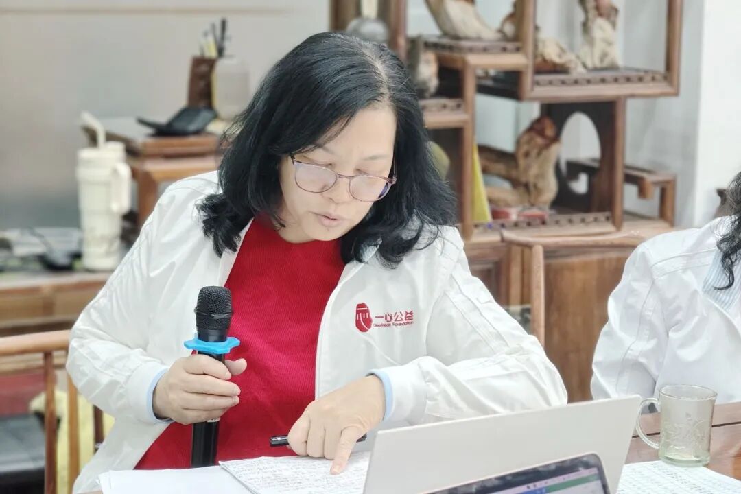 会议伊始,服务队队长郭燕英向与会人员传达了基金会第四届理事监事会第九次会议重点内容,包括基金会近期工作情况、各服务队工作情况和经费使用情况,以及汇报了2023年度“救心”项目会议总结分享。