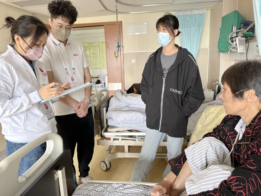 志愿者鼓励刘阿姨保持愉悦心情,调理好身体,才能尽快进行手术,同时大家也向在身边照顾的儿女儿点赞祝福刘阿姨早日康复。