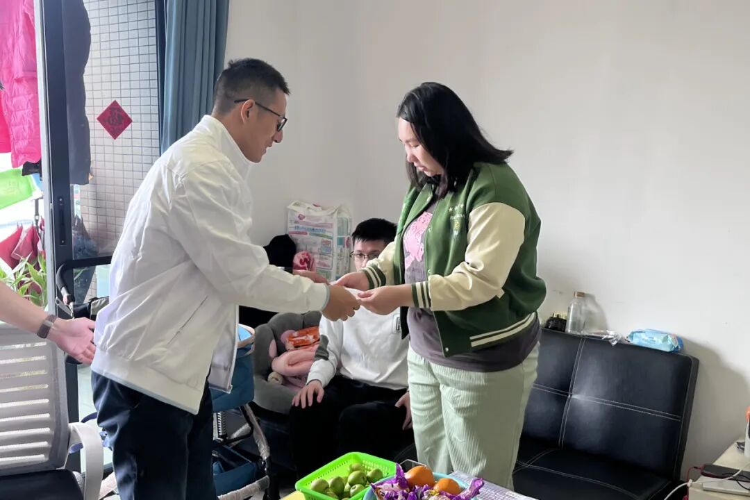2024年3月14日,广东省一心公益基金会第二服务队队员前往东莞市石龙镇开展困难家庭先天性心脏病(以下简称“先心病”)患儿探访活动,详细了解患儿的病情和家庭经济等情况,并送上慰问金表示关怀。