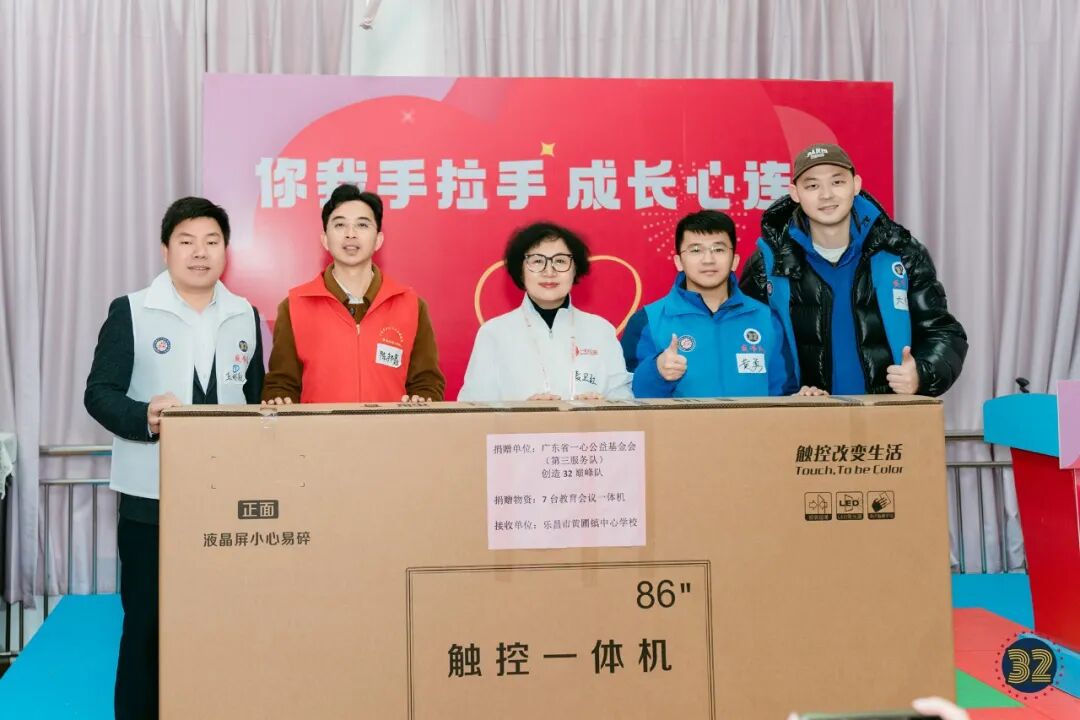 一心公益第三服务队携手领创32团队研究决定向该校捐赠7台教育一体机设备,并于2024年3月10日在该校举办了捐赠仪式暨“成长心连心”帮扶活动。