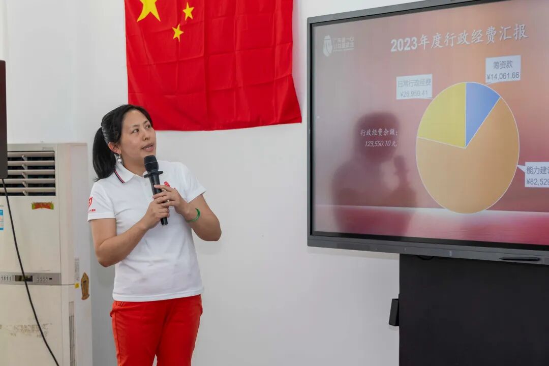 接着,财务管理委员会主任黄海燕做2023年财务报告,服务队财务情况公开、透明,接受公众的监督。