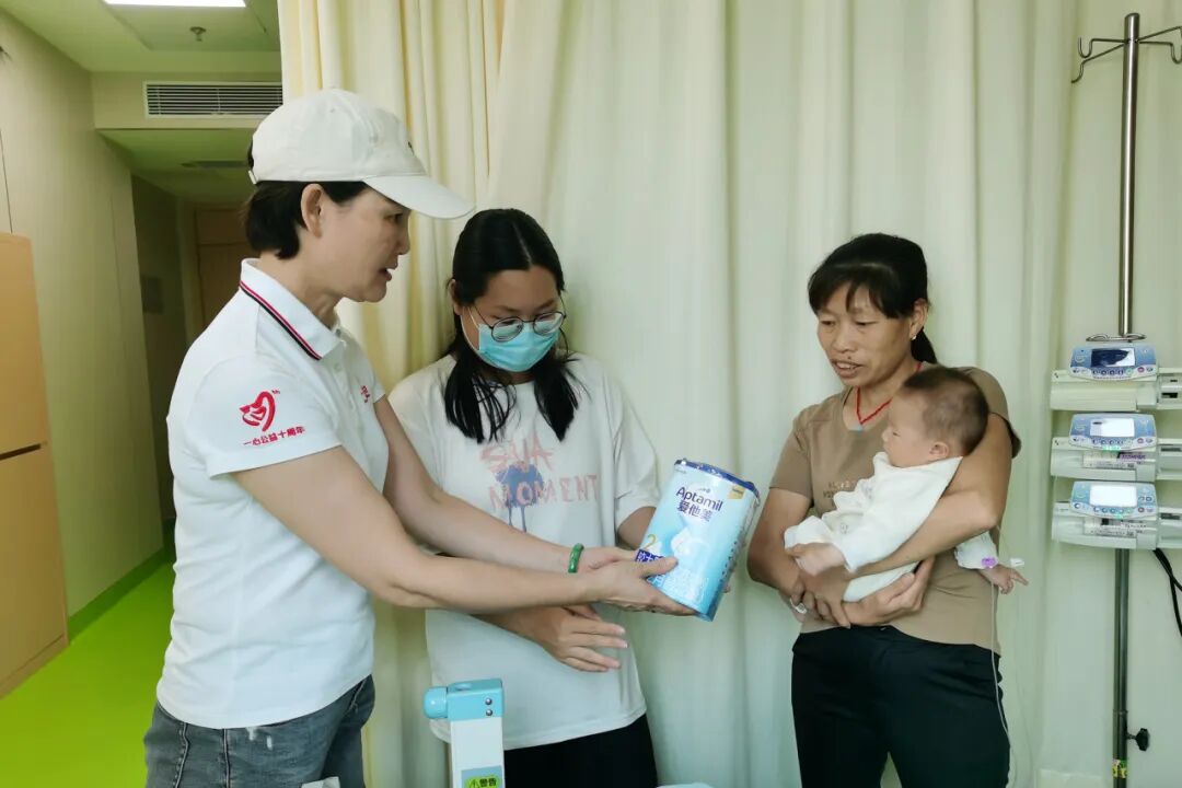志愿者向患儿家属送上慰问品