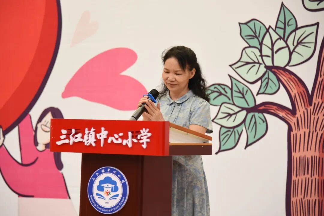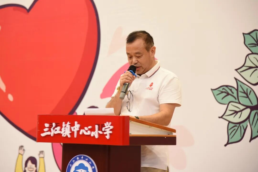 三江镇中心小学校长欧阳校长致辞,她向关心和支持学校教育发展的一心公益、爱心公益团队的全体志愿者表示诚挚的问候和谢意。