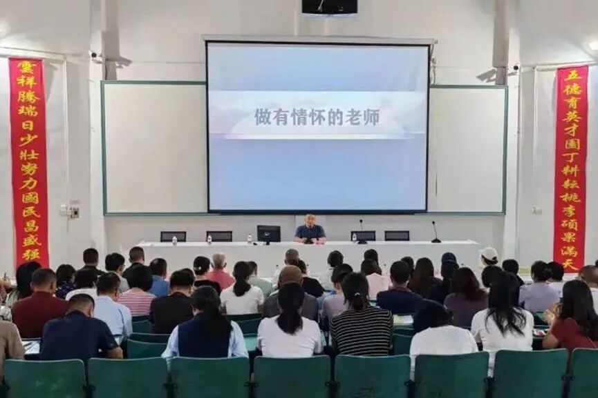 在五云中学,近80位乡村教师参加了一场生动有趣的师德师风专题讲座活动。主讲人围绕爱岗先爱国、教育的本质、现代师德规范、心理学中的教育智慧、个人幸福与大教学需求、快快乐乐做好现代教育等六个主题进行分享,让与会老师们认识到师德师风是教书育人的基本要求,也是做一位好老师的立身之本,更是学校推进高质量发展必须常抓不懈的工作。