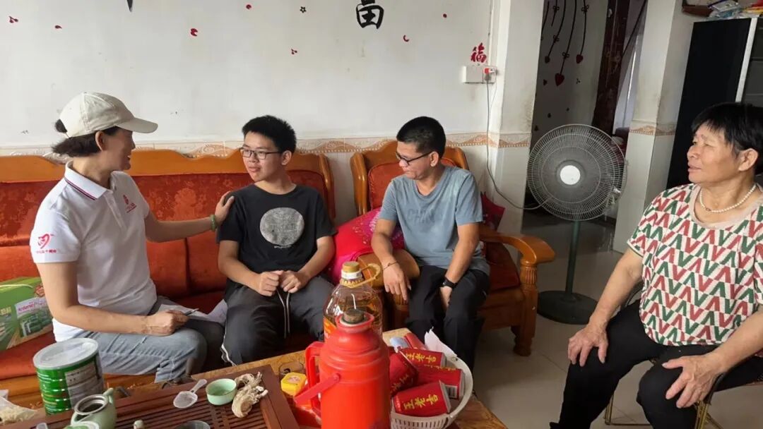 活动中,志愿者分别前往揭西县河婆镇和五云镇,在学校老师的带领下,家访了8名受助学生。李同学住在河婆镇,知道志愿者前来探访,李同学早早地在村道上等待着,指引志愿者们停车后,李同学带领大家通过狭窄的山道,来到她的家中。李同学刚刚参加完高考,考试结束后,她便回到家中,照顾92岁的奶奶和患有精神障碍的爸爸。