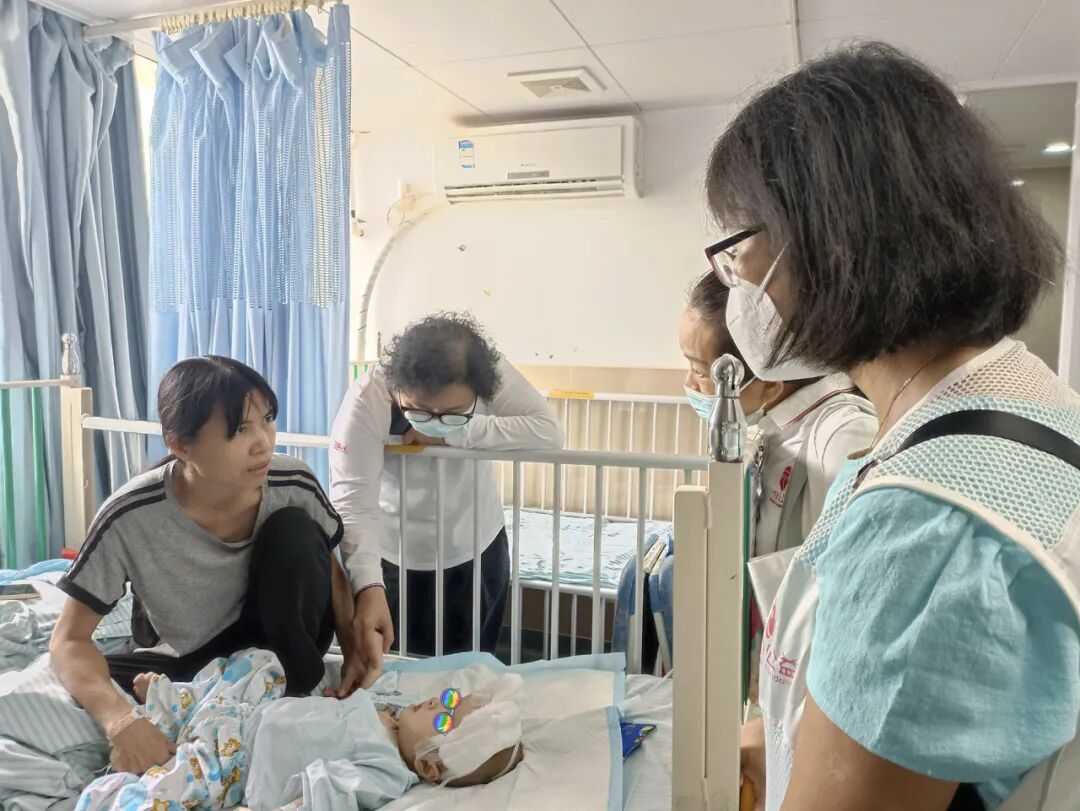 接着,服务队队员及志愿者前往省医和省妇幼分别探访了先心病患儿小韵、小妍和小华,并与患儿的父母进行详细交流。
