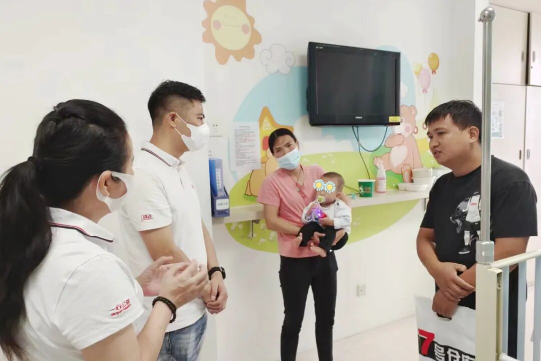 首先,队员们来到了妇儿中心,探访先心病患儿小婷。小婷1岁多,一出生就确诊患有复杂先心病。2023年2月,在基金会的资助下,小婷接受了第一次救治手术,恢复情况良好。