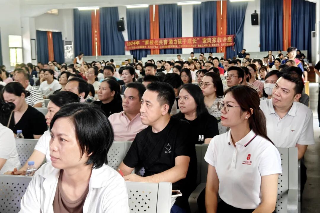 2024年7月10日下午,广东省一心公益基金会第十服务队在广州市增城区英华学校毓华楼四楼礼堂举办“家校社共育,助力孩子成长” 家风家教公益讲座。广州市增城区英华学校董事长陈书行、广东省一心公益基金会第十服务队队长姚灌坤、副队长潘旭康、副队长姚宇健、秘书长姚泳照、教育培训委员会主任吴洋,以及家长、老师等300多人参与了本次讲座。