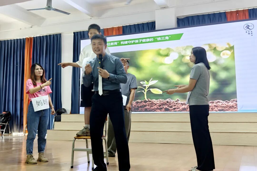为了帮助家长更智慧地应对家庭教育,导师邀请了3位家长和1名学生上台进行角色扮演,通过生动的案例和互动游戏,帮助家长们解决孩子生活中的问题,提升亲子之间的沟通力。