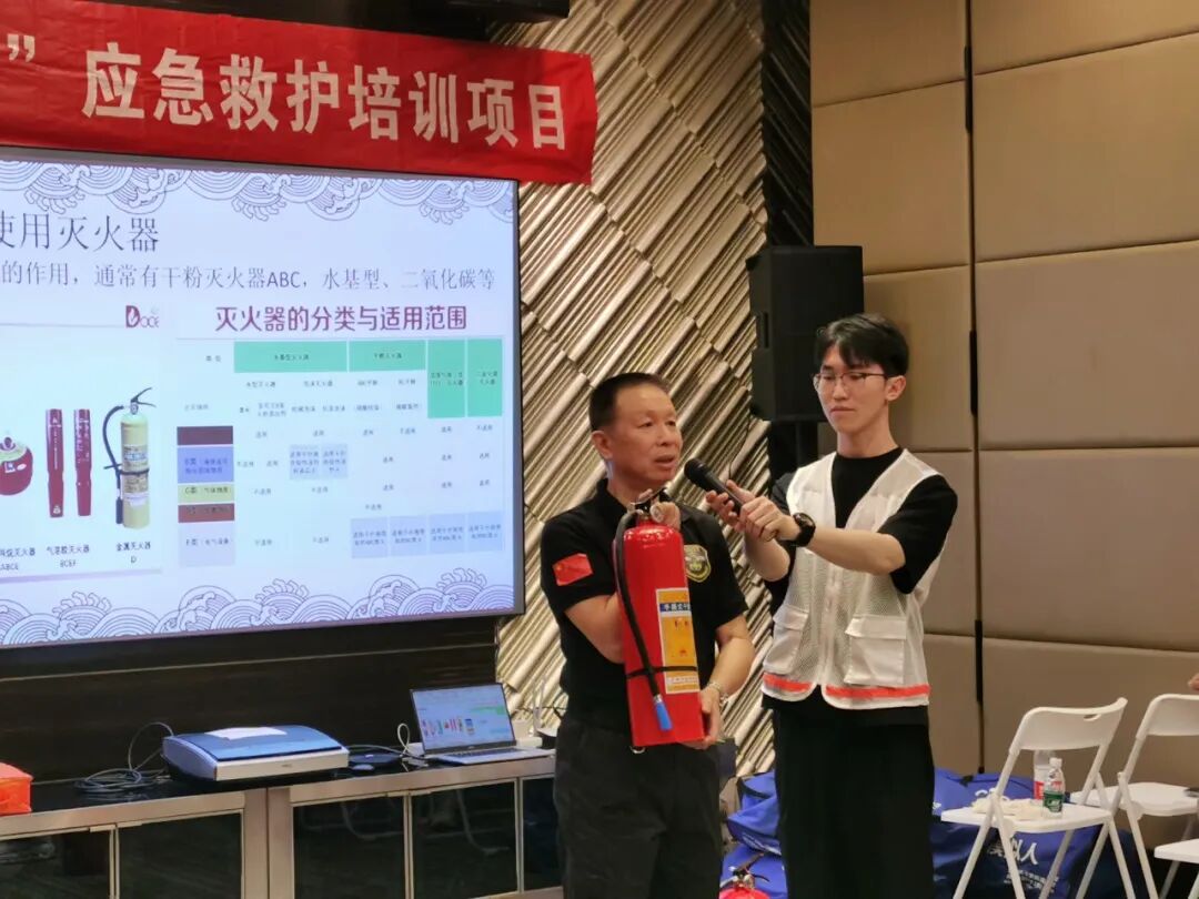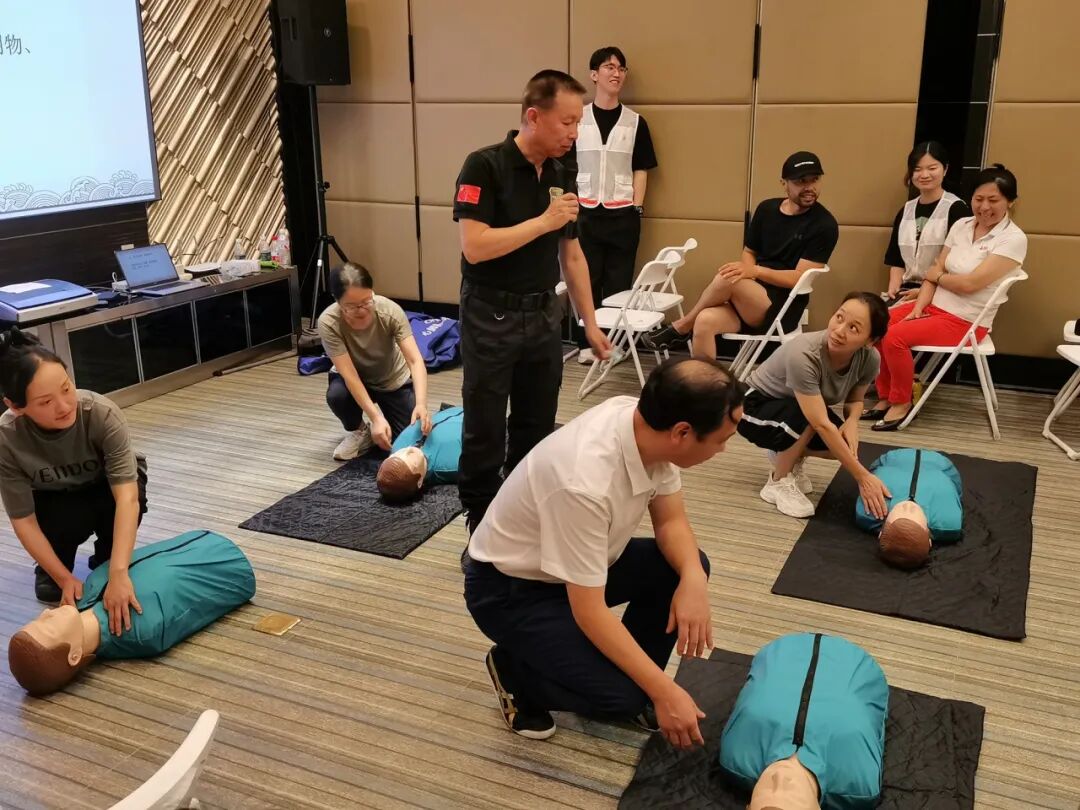 此次培训分为综合理论和模拟实操两个部分。培训导师结合课件与教学视频,向大家重点讲解了成人心肺复苏术的理论知识、胸外按压的注意技巧、自动体外除颤仪的使用方法,以及海姆立克急救法的操作方法。