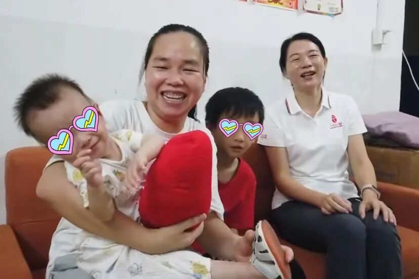 接着,志愿者来到了小珊的家里,小珊自出生后就患上了黄疸和肺炎,检查确诊患有先心病,没有接受母乳的喂养。志愿者初次家访小珊时,小珊妈妈表示,爸爸外出打工,她在家照料孩子们,同时还会做手工活帮补。