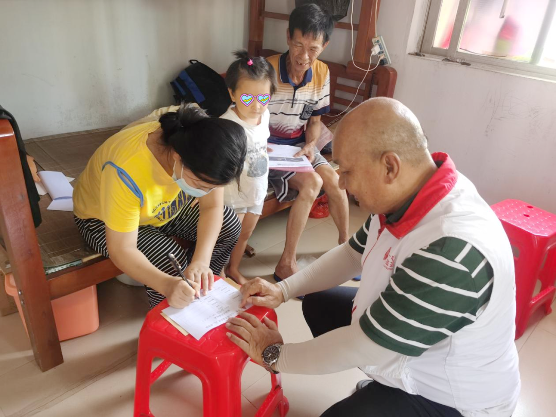 2024年8月1日,广东省一心公益基金会第九服务队湛江义工组前往湛江市霞山区,家访困难家庭先天性心脏病(简称“先心病”)患儿小涵,了解患儿的病情和家庭经济情况。