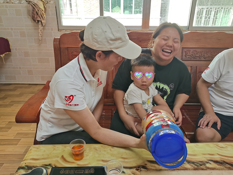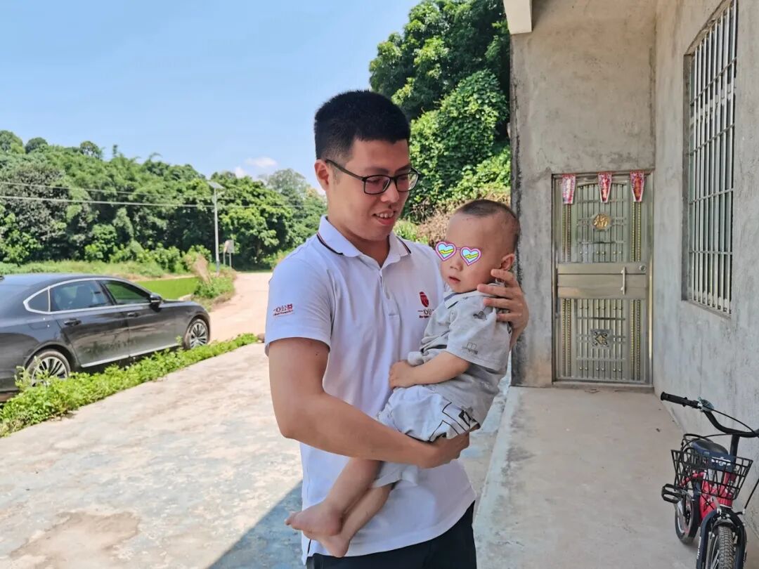 小安住在郁南最偏远的千官镇,志愿者们来到小安家中,看到小安已经开始学走路了。小安于去年2月出生,服务队曾于2023年2月和10月两次资助其进行救治手术。
