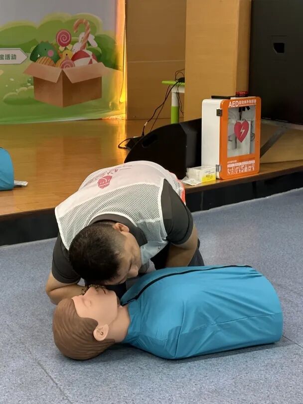 首先,导师向大家介绍了如何正确进行心肺复苏,包括心脏停搏的原理以及完整的施救流程。导师详细介绍了心肺复苏(CPR)的原理、胸外按压的注意技巧以及自动体外除颤仪的使用方法及注意事项等。