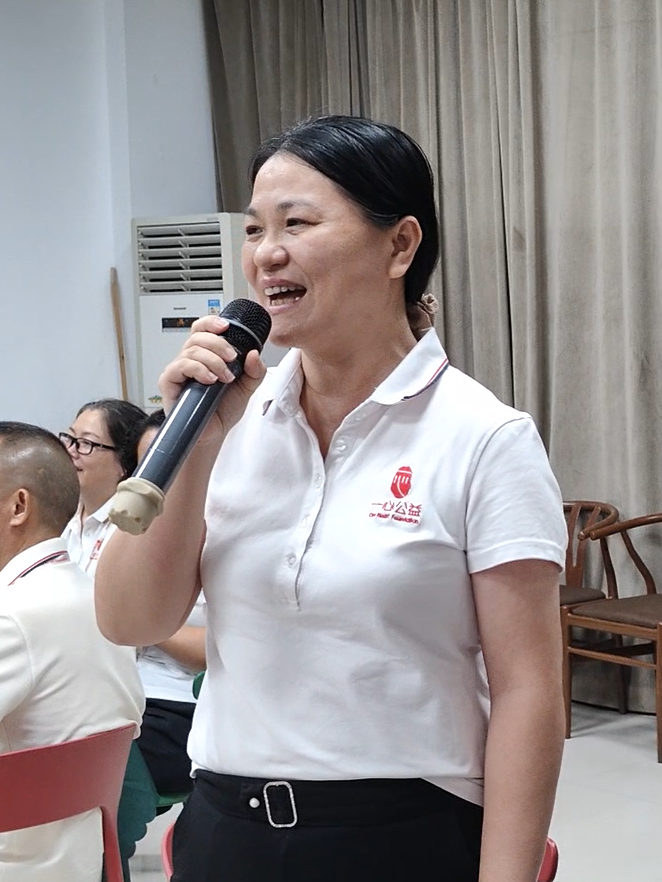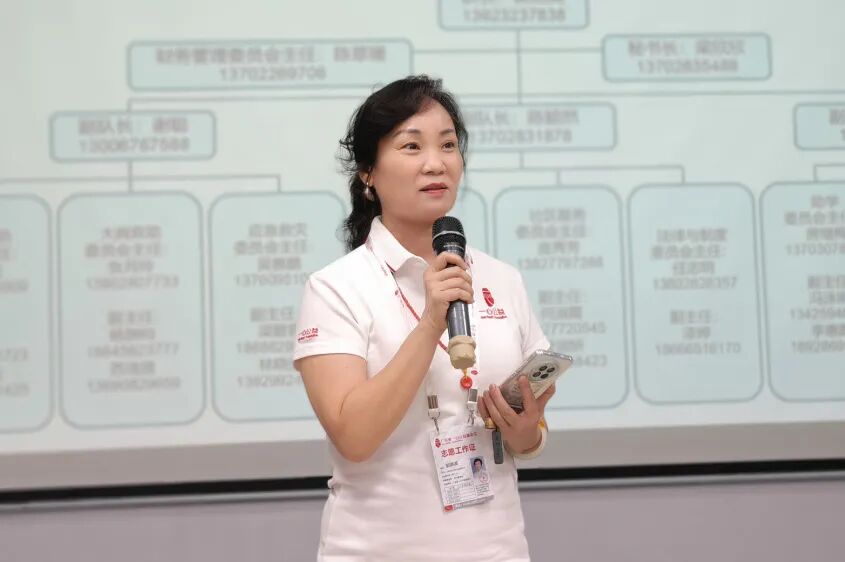 首先,五位历届救心行动委员会主任,任志明、温远霞、周国华、谢聪和秦小兰进行了分享。他们在大会上分享了各自参与服务队救心项目的服务经验和深刻感受。现任救心委员会主任秦小兰表示,服务过程带给自己满满的正能量。通过自己的亲身经历,她深切感受到挽救一个孩子就是拯救一个家庭的重大意义。副队长谢聪也呼吁大家共同参与救心行动,感受付出的爱和温暖。