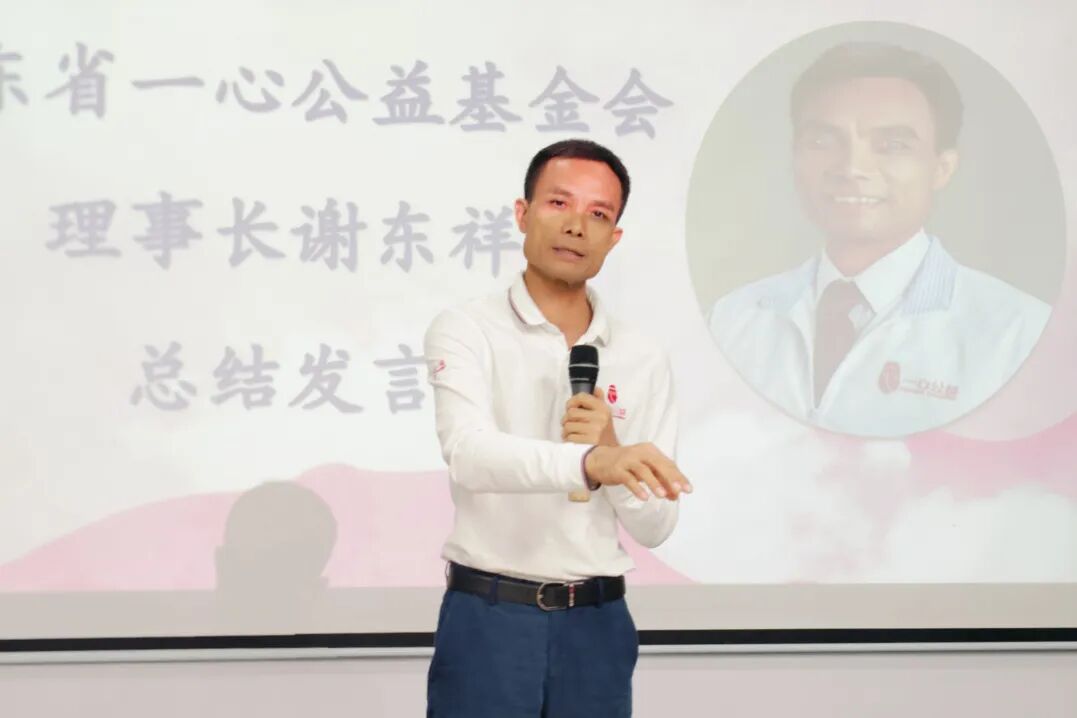 会议尾声,广东省一心公益基金会理事长谢东祥在总结发言中强调了慈善事业的重要性,并分享了自己公益之路的历程。他勉励大家要明确自己的目标和方向,不忘使命,积极行动,感召更多的爱心人士一起推动慈善事业的发展。