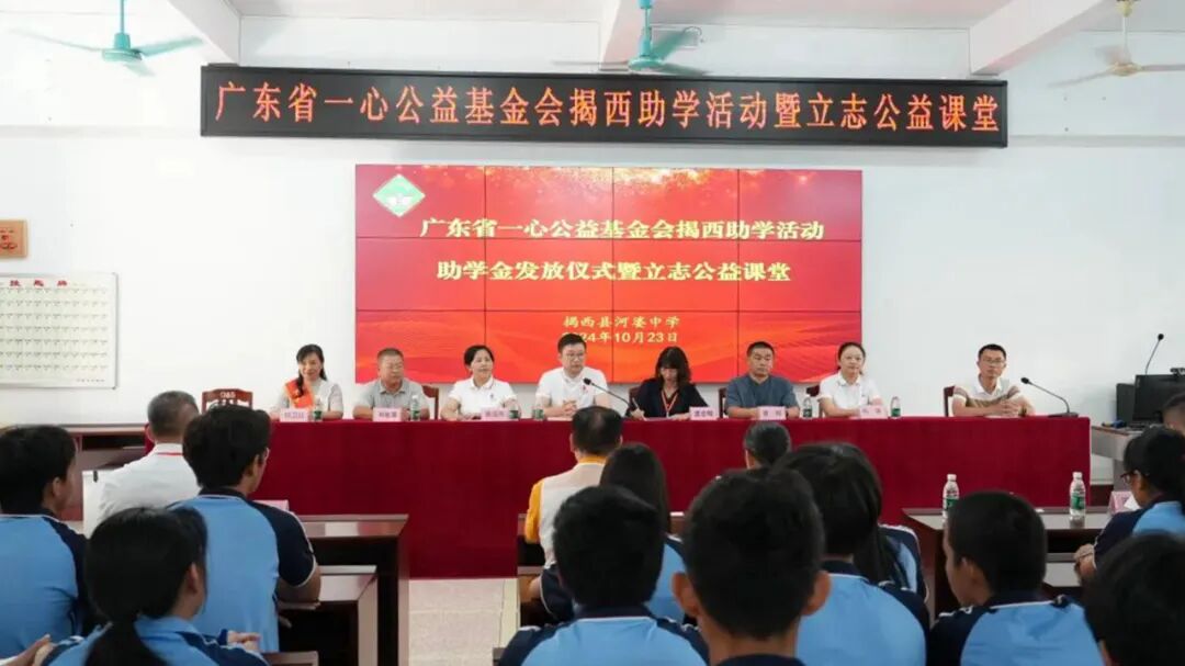 2023年10月23日至24日,广东省一心公益基金会第一服务队前往揭阳市揭西县,开展主题为“守护梦想,载爱前行”的揭西助学活动,向42名家庭经济困难的优秀学生发放了合计9.5万元助学金。