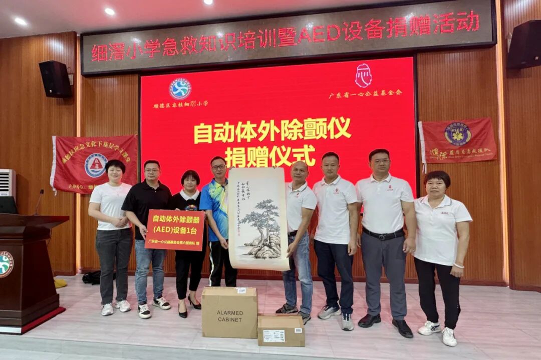 2024年10月18日,广东省一心公益基金会第六服务队在容桂细滘小学举办一场“守护生命”应急救护安全知识培训活动,并向该校捐赠一台自动体外除颤仪(AED)。