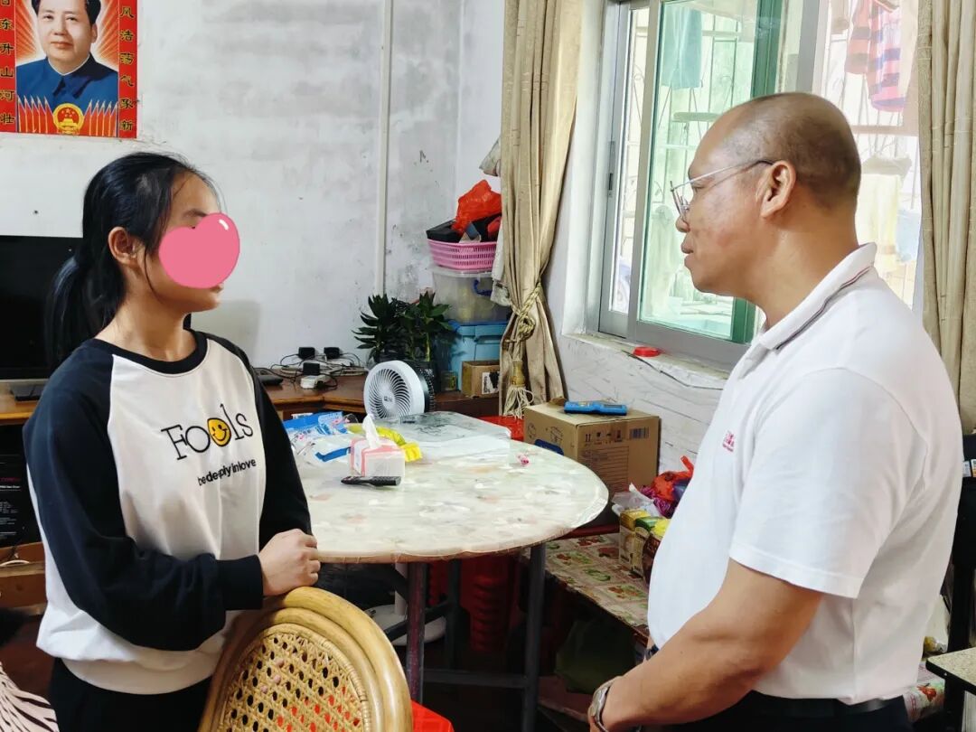 另一名探访对象小婷,今年9月升入高一,家中人口众多,包括同时就读高中的姐姐和3个分别就读初中及小学的妹妹,以及一位71岁的奶奶。父亲早年患有肺结核,目前在快递公司工作,母亲因需照顾家中老幼无法外出工作,偶尔做些手工补贴家用。全家依靠每月800元的低保金和父亲的收入维持生计。