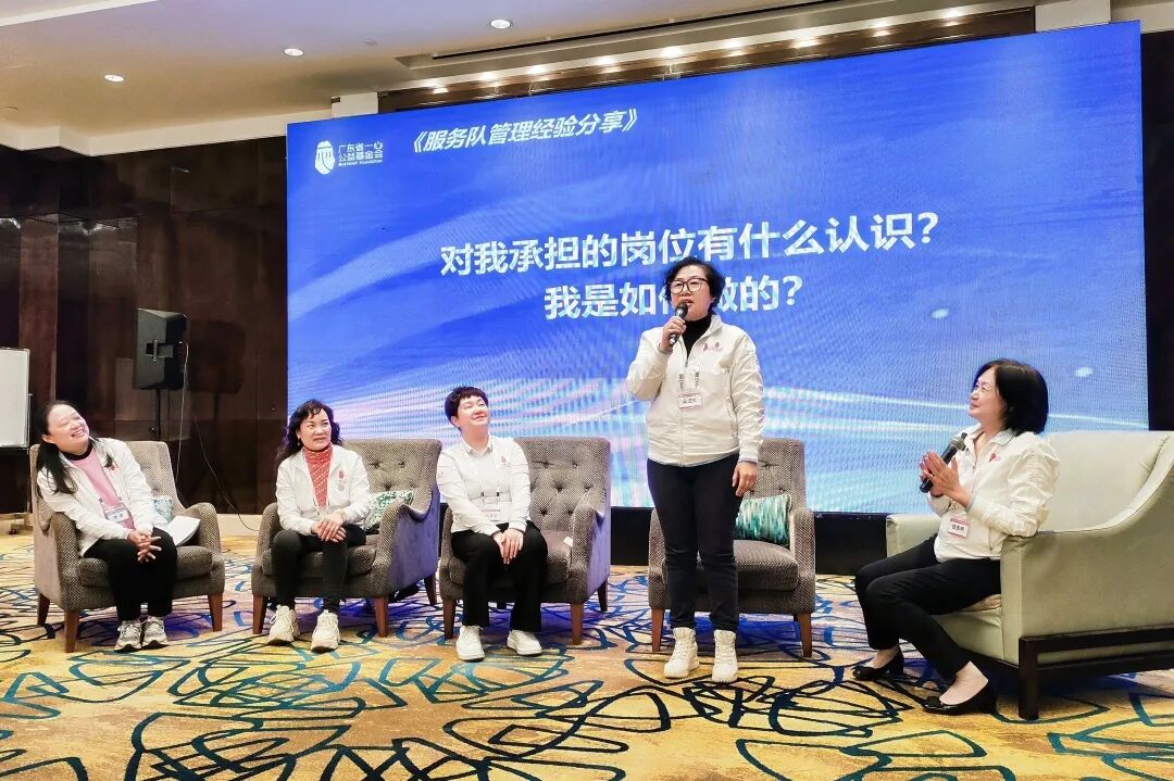 在《服务队管理经验分享》课程中,基金会常务副理事长任志明、理事郭燕英、麦卫红、陈菁、监事刘清华,分别结合工作案例,分享了服务队管理办法和干部职责,为学员们提供了宝贵的管理经验。