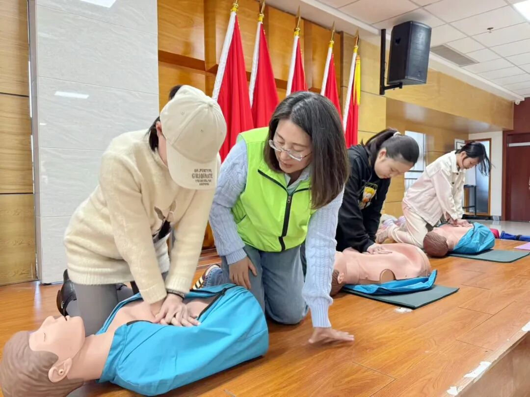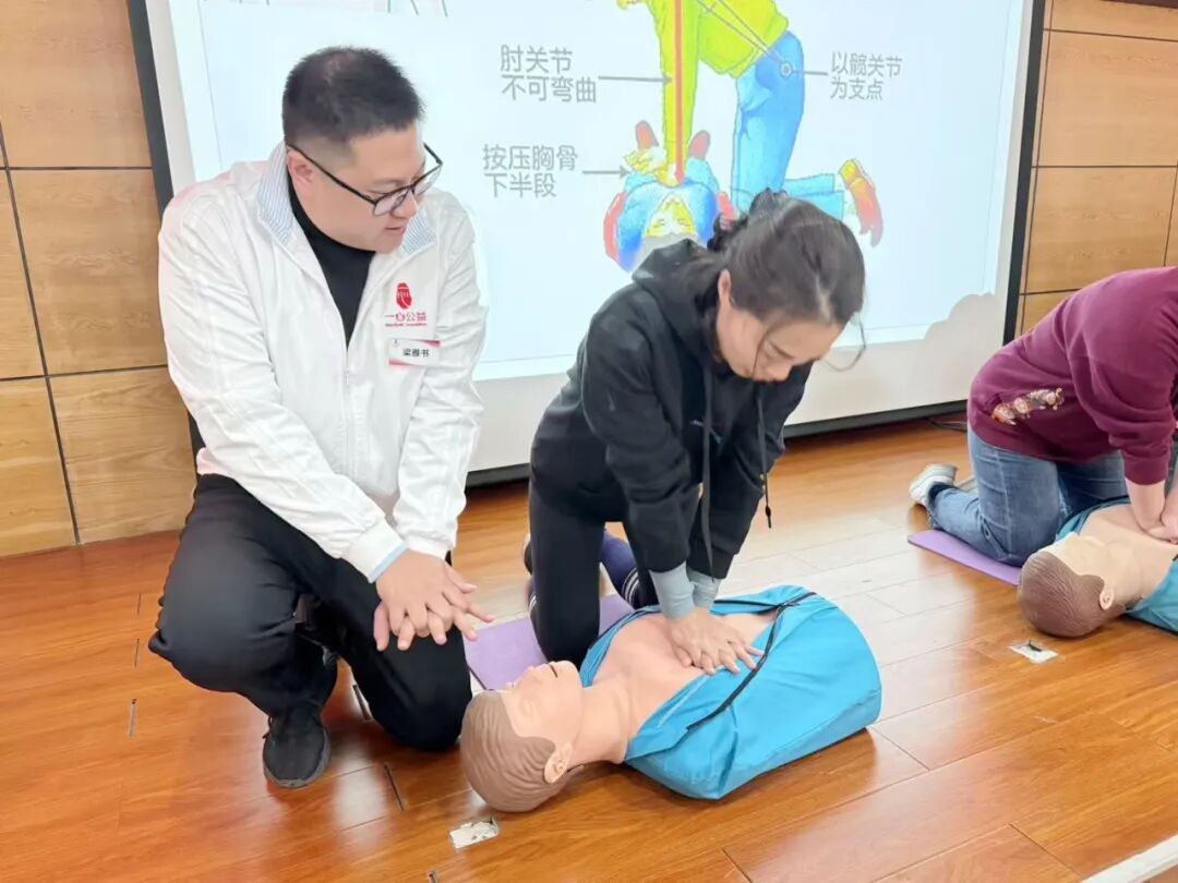 培训主要围绕心肺复苏(CPR)、自动体外除颤器(AED)的使用,以及气道异物梗阻的抢救措施等内容展开。首先,讲师介绍了如何正确进行心肺复苏术,学员们通过实操演练,进一步认识施救流程和按压胸腔的手法。
