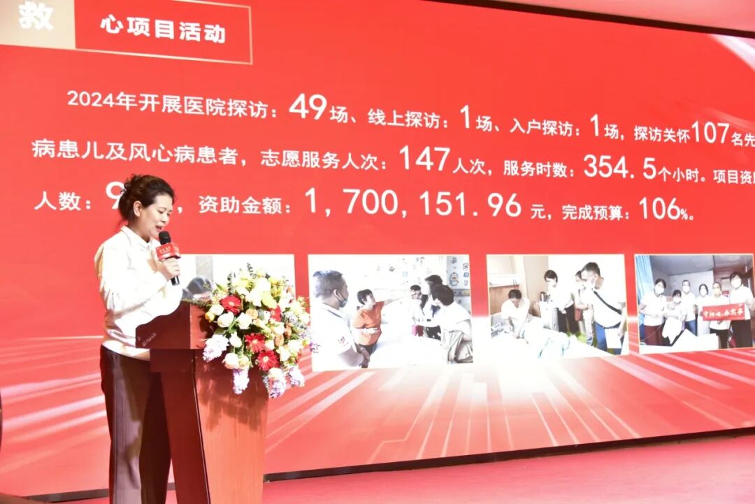 随后,第三服务队秘书长李枝俏作2024年工作总结及财务报告,详细介绍了2024年救心项目、大病救助、助学恤孤、敬老服务、应急救护培训等项目成果。