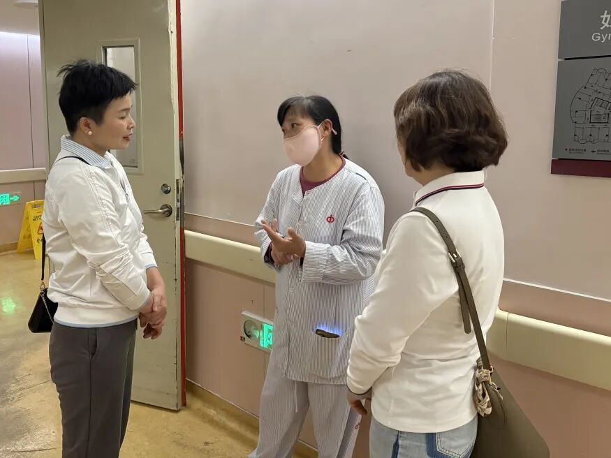 在中山大学第一附属医院,队员们见到了50岁的祥姐(化名),祥姐今年在体检中被确诊患有宫颈癌。由于丈夫早年去世,她独自抚养三个孩子长大,目前最大的孩子已经工作,另外两个孩子仍在读书。在第二服务队助学项目的资助下,孩子才得以继续学业。