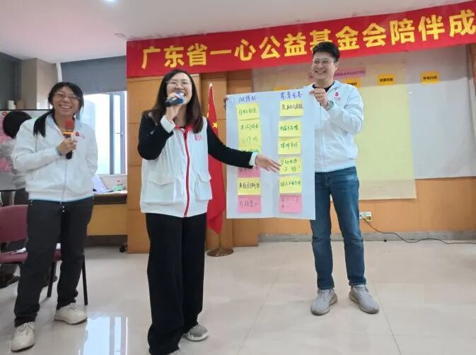 随后进入感受分享环节,现场气氛活跃,大家踊跃发言:有人因在陪伴成长过程中实现了自我成长而倍感开心;有人提到执行过程虽疲惫且有压力,但收获满满,因而感到欣喜;还有人因服务队申报项目切实帮助到受助群体而深受感动。