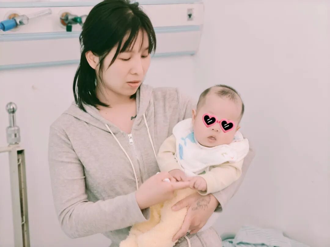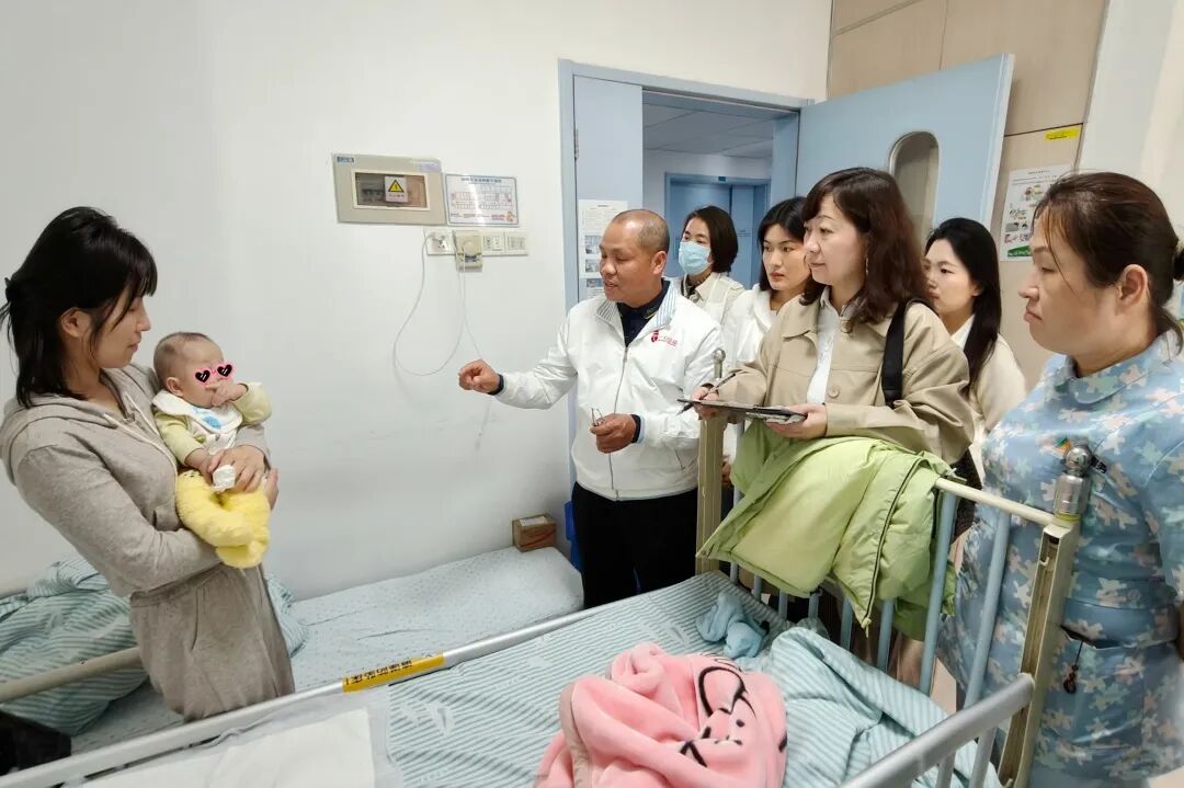 在妇儿中心八楼病房,队员们见到了小毅及其母亲。据小毅的母亲介绍,在孕期23周左右产检时,发现胎儿患有先心病。2024年9月,小毅在省妇幼早产,随后转至心脏中心接受治疗。