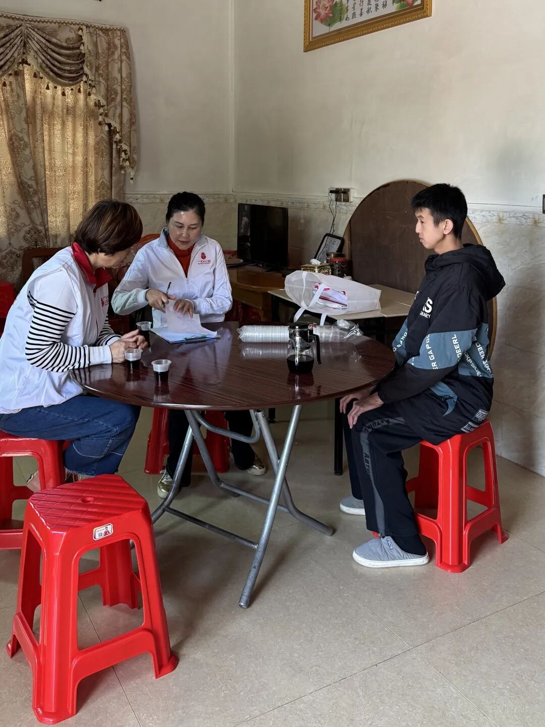 林同学家里还有一个正在读高中的姐姐,家中仅靠父亲打工维持基本生活,母亲因需照顾林同学的日常生活,没有固定工作。看到术后康复的林同学,志愿者们纷纷鼓励他努力学习,积极面对生活。