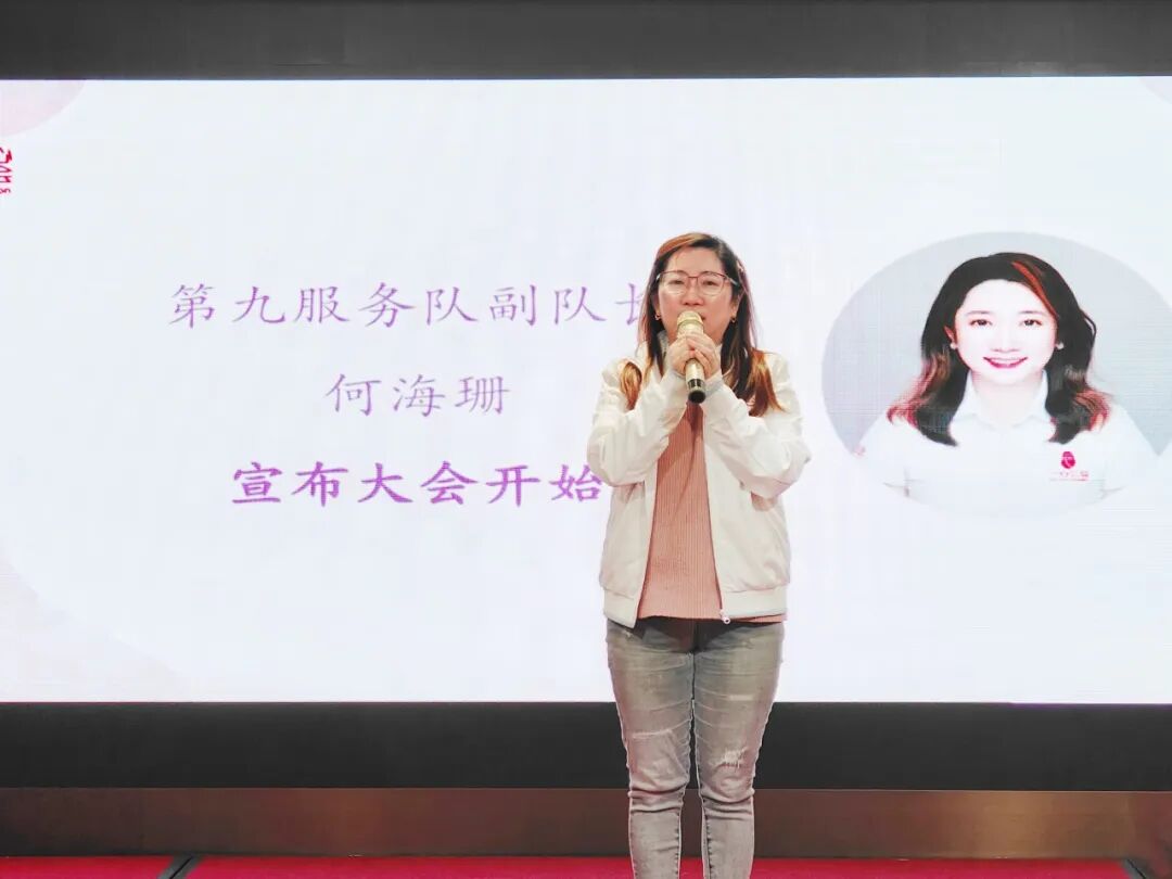 会议伊始,服务队副队长何海珊宣布队员大会正式开始。服务队队长郭燕英上台致欢迎词,她衷心感谢全体与会人员在百忙之中,风雨无阻地出席本次会议。