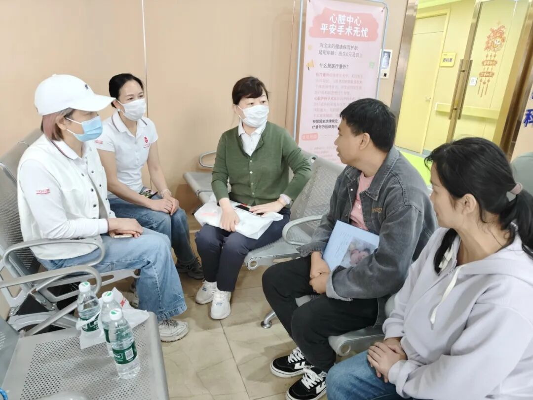 在省妇幼二楼心脏中心,队员们见到了小康的父母。据父母介绍,小康的母亲在孕期的各项检查中均未发现异常。2025年3月23日小康在东莞出生,出生时的检查亦未发现异常。然而,出院后的小康频繁哭闹,出院第8天后,小康的父母带他返回出生医院检查,未查出异常。