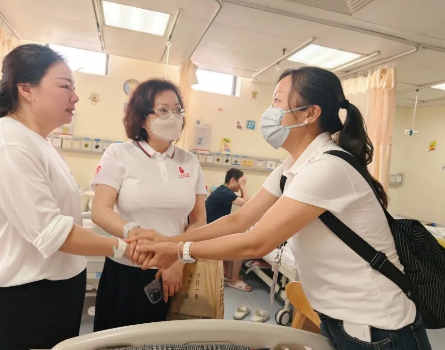 志愿者们被这位母亲的坚强深深打动,纷纷送上拥抱以示鼓励,叮嘱她一定要保重身体,还为小欣带来了书籍、玩具等慰问品,祝福她早日康复,重返校园。