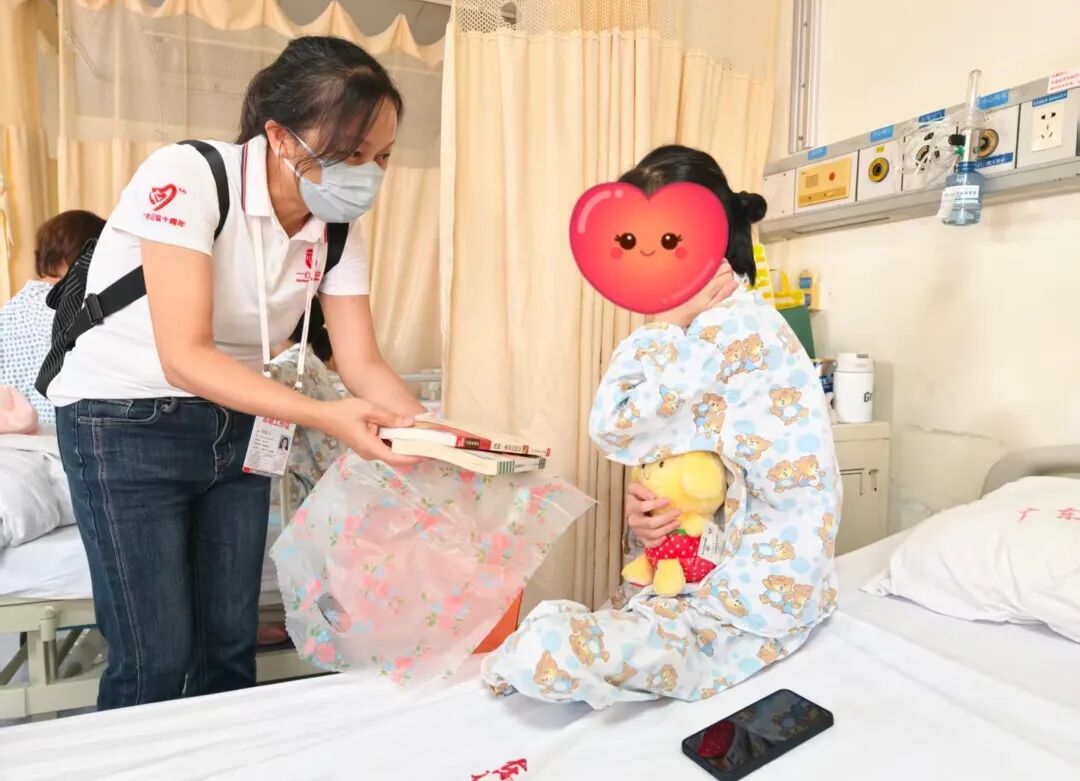 志愿者们来到省医,探访11岁的小欣。小欣来自汕头,8月1日已办理入院,但因患有重度肺动脉瓣关闭不全等复杂先心病,医院仍在全力研究最佳治疗方案,手术尚未进行。