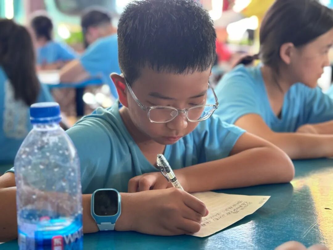 第三日,在万江区东江印象园内,孩子们尽情玩乐。这是一场用笑声和奔跑写就的“成长养分课”,藏着对童年最珍贵的滋养。游玩结束后,孩子们开始写信,记录夏令营点滴与不舍。