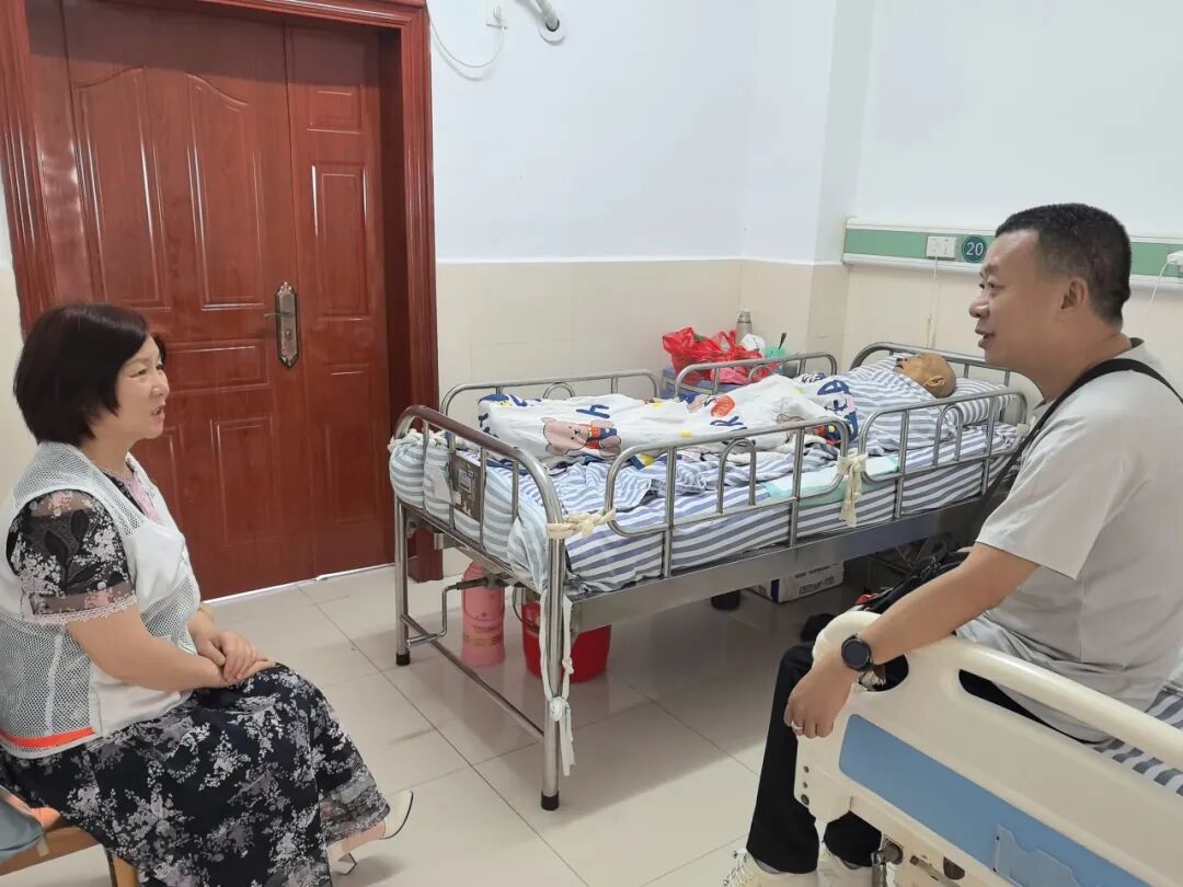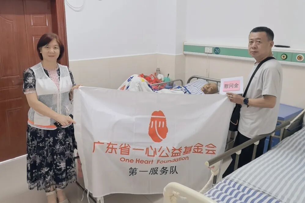 2025年8月2日,广东省一心公益基金会第一服务队队员前往韶关市浈江区的韶关学院医学院附属医院,探访一名大病患者,并送上慰问金。